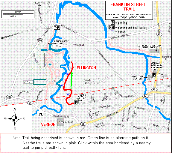 The trailhead and parking area are on Franklin Street, Vernon, on the left, one half block up the street off