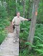 footbridge and passes bench #1 nailed between 2 oak trees, then along a wetland on the left. It then comes out to the