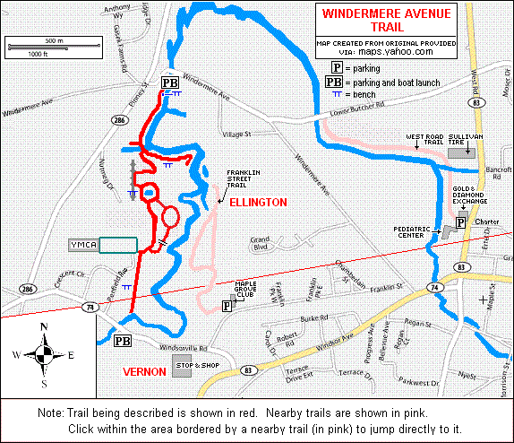 The trail from Windemere Avenue trailhead to the YMCA is about one mile long. A side trail goes around the pond, with