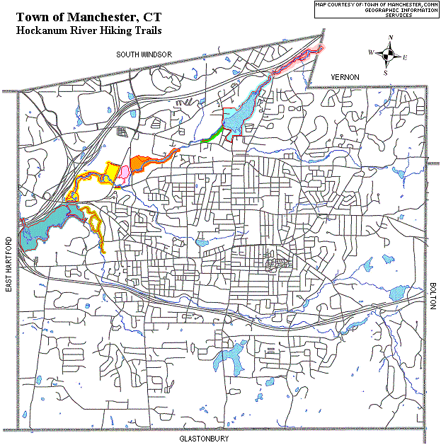 the colored trail area on the Town of Manchester map.