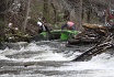 Each paddler must wear an approved personal floatation device and must bring a length of line to attach to his or her boat. Wetsuits are recommended due to the cold water in the river. Getting wet is almost totally unavoidable. Goggles and or helmets are highly recommended due to the numerous hanging branches over the waterway. The average length of the race ranges from just over 1 hour for experts to over 1½ hours. The race offers a challenging course of class 1 and 2 white water. Novice boaters with no experience in canoes or kayaks are urged NOT to enter this race due to class 2 rapids behind Beacon Light off Oakland Street. View these rapids from shore before entering the race.