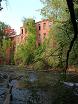 then goes up onto the old Oakland Paper Mill property, with the ancient brick walls close on the right and a slope dropping